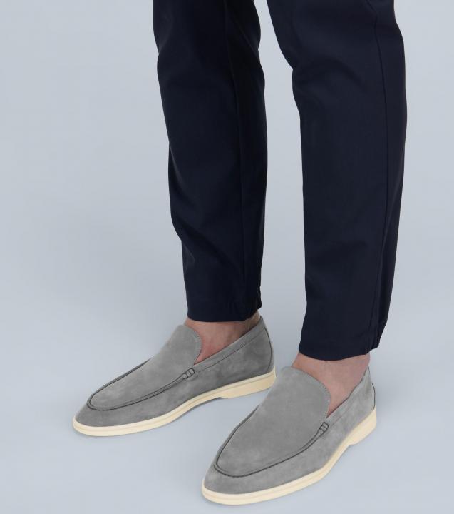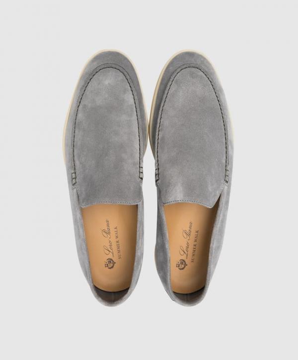 Loro piana summer walk pearl powder Gull Grey suede loafers