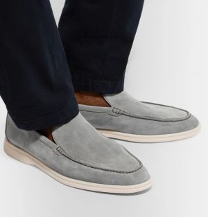 Loro piana summer walk pearl powder Gull Grey suede loafers